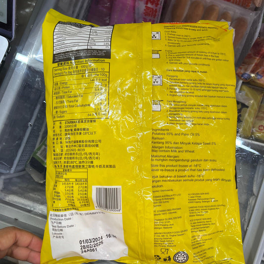 曲薯條1公斤(或其他同等級牌子包裝)|純天然配方|無添加劑|香脆可口|適合煎、烤、炸等多種烹飪方式|冷凍新鮮加工|健康美味選擇[3873302049001]