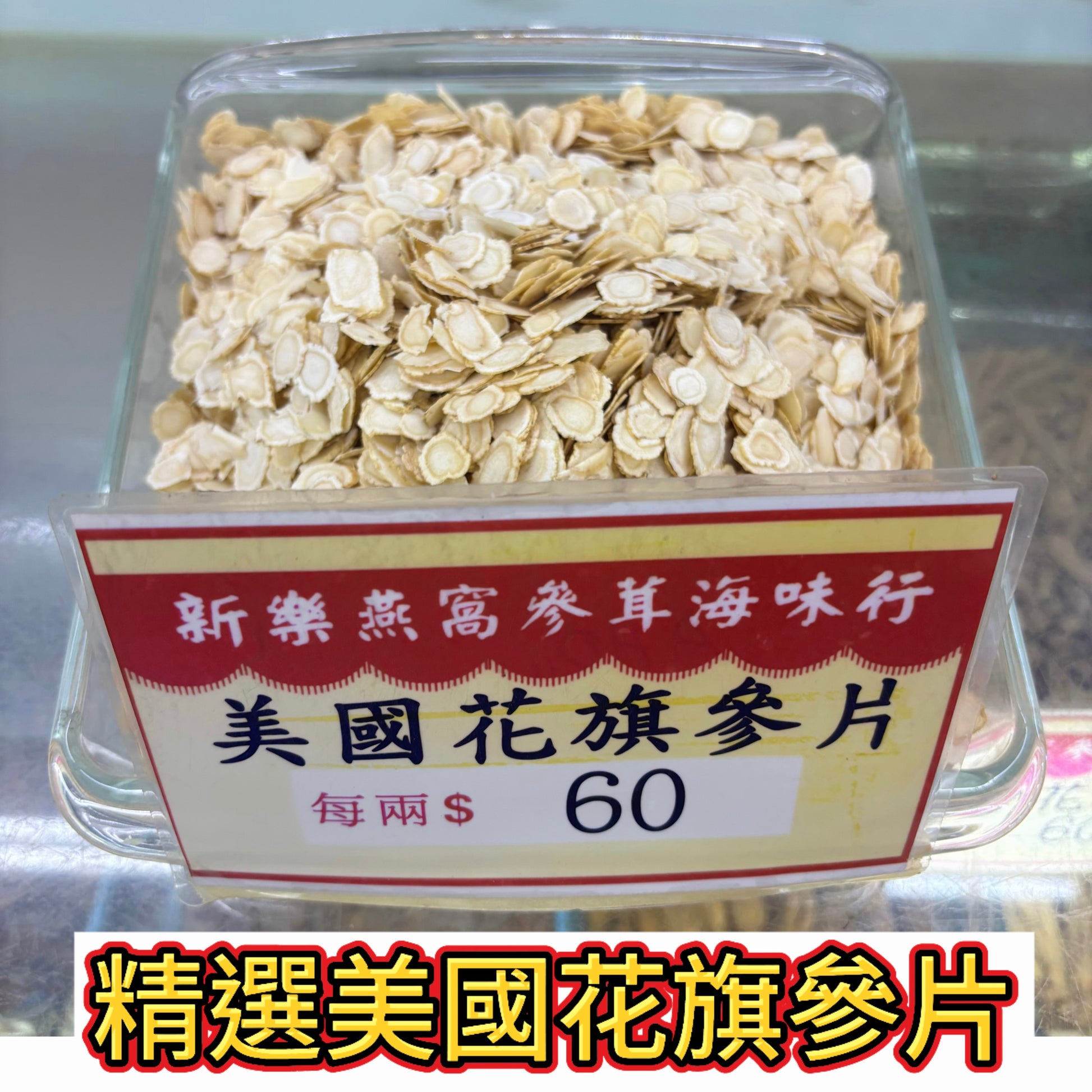 精選美國花旗參片 以薄切參片為主,價格實惠僅 $60/一兩, 泡茶快速釋放清香,適合初次接觸花旗參的消費者。